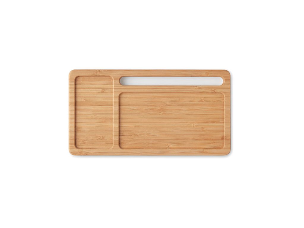 Bezdrátová nabíjecí podložka s USB hubem a stojánkem pro telefon. Kryt z bambusu. Obsahuje konektor typu C. Výstup DC5V/1A (5W). Bezdrátový výstup DC5V/1A. Kompatibilní s posledními modely Android a iPhone 8 a novější. Bambus je přírodní materiál, může dojít k mírným změnám barvy, dekorace a velikosti.Tento výrobek je určen jako reklamní předmět a je vhodný pro potisk Vašeho loga.
