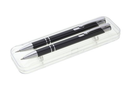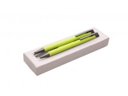 Sada LOBIA žlutá - tužky jsou vyrobeny z hliníku, mají na těle 2 stříbrné proužky a stříbrné doplňky jako jsou špička, klip a cvakátko. Vše dodáváno v plastovém, transparentním boxu. Tento výrobek je určen jako reklamní předmět a je vhodný pro potisk Vašeho loga.Rozměr: 137x10 mmNáplň: velkoobsahová
