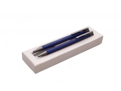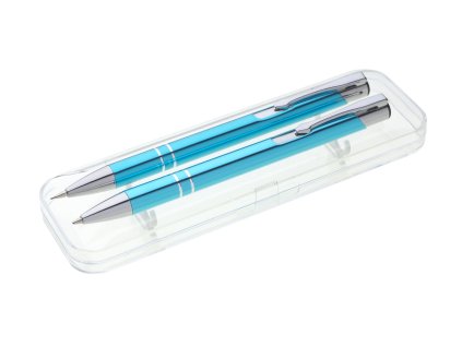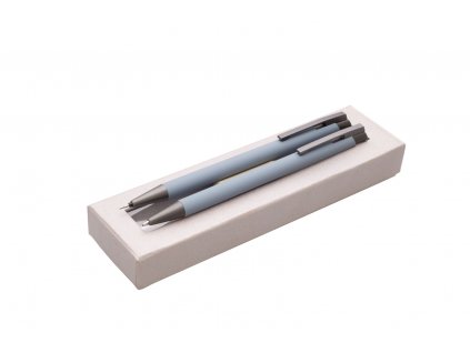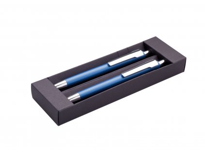 Kovová propiska a mikrotužka mají přechodový efekt barvy od stříbné do modré. Pouzdro je plastové s šedým podkladem. Tento výrobek je určen jako reklamní předmět a je vhodný pro potisk Vašeho loga.Rozměr: 160x55x20 mmNáplň: