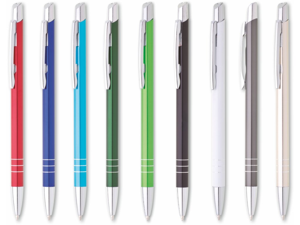 Tenká kovová propiska SOTTI v modré barvě s chromovými doplňky a třemi tenkými proužky. Náplň X-20, modře píšící. Tento výrobek je určen jako reklamní předmět a je vhodný pro potisk Vašeho loga.S vlastním potiskem tento výrobek objednáte zde...