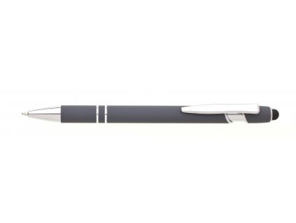 Tenká kovová propiska SOTTI s touch koncem v šedé barvě s chromovými doplňky a třemi tenkými proužky. Náplň X-20, modře píšící. Tento výrobek je určen jako reklamní předmět a je vhodný pro potisk Vašeho loga.S vlastním potiskem tento výrobek objednáte zde...