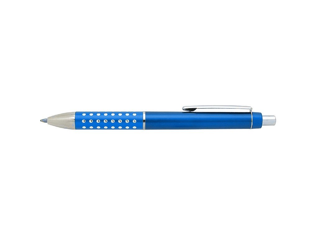 Plastová propisovací tužka BLERA s modrým tělem. V úchopu zajímavě řešená děrováním, kde vystupuje stříbrná chromovaná část. Náplň je velkoobsahová, modře píšící. Tento výrobek je určen jako reklamní předmět a je vhodný pro potisk Vašeho loga.S vlastním potiskem tento výrobek objednáte zde...