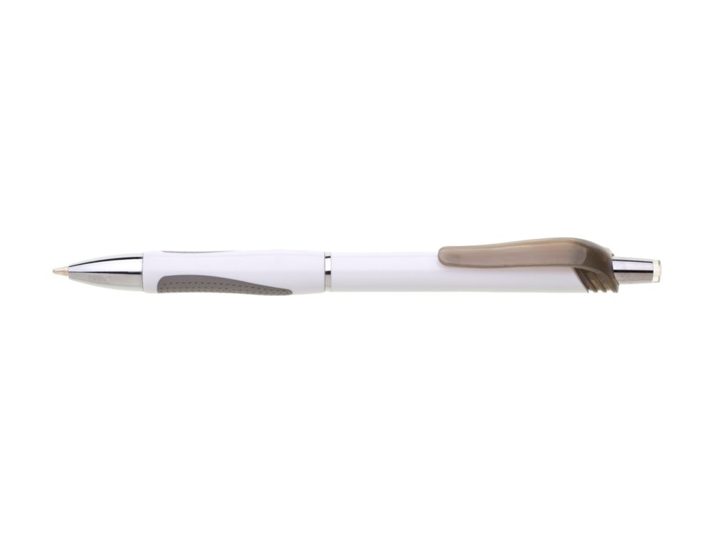 Bílá, plastová propiska s pochromovanými doplňky jako jsou klip, tělo cvakátka a proužek uprostřed těla tužky. Grip je šedý, částečně pogumovaný, stejně jako klip. Náplň X20, hrot 1mm. Tento výrobek je určen jako reklamní předmět a je vhodný pro potisk Vašeho loga.Rozměr: 142x11 mmNáplň: X20-106mm