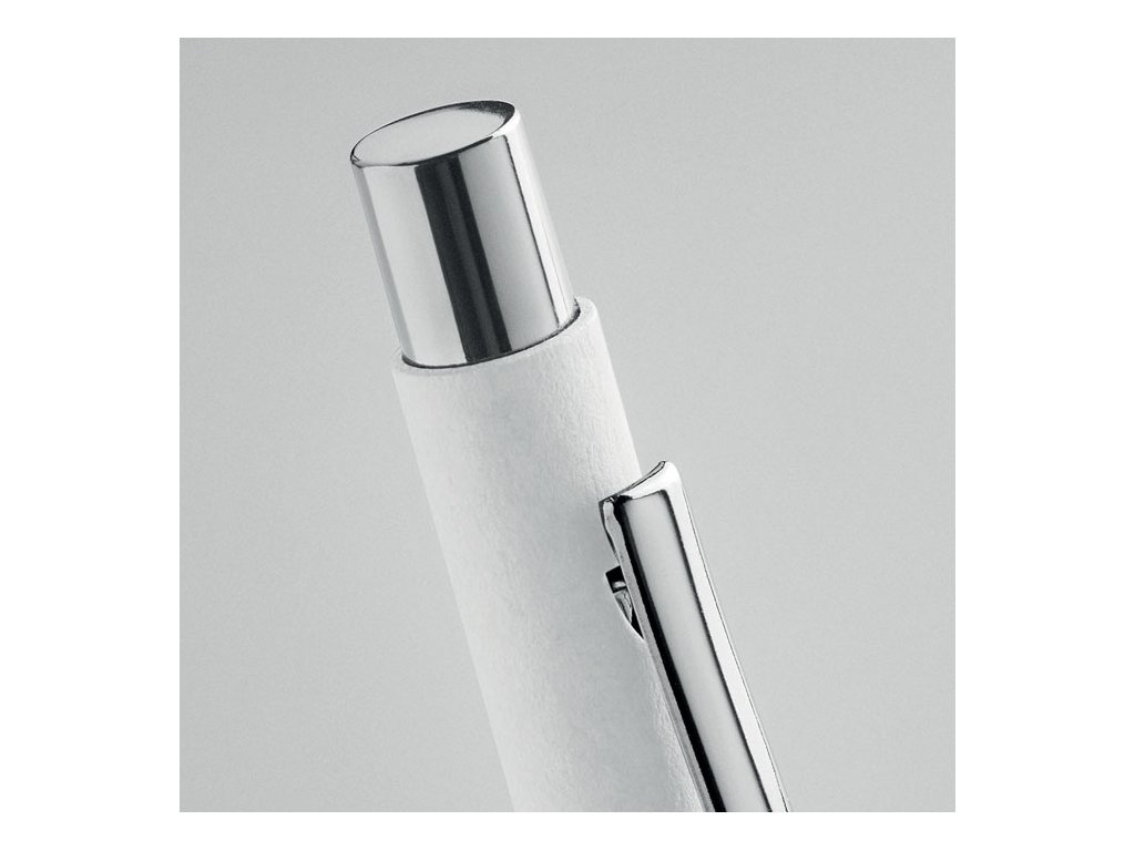 Tlačítkové kuličkové pero z recyklovaného papíru a s kováním. Modrý inkoust.Tento výrobek je určen jako reklamní předmět a je vhodný pro potisk Vašeho loga.