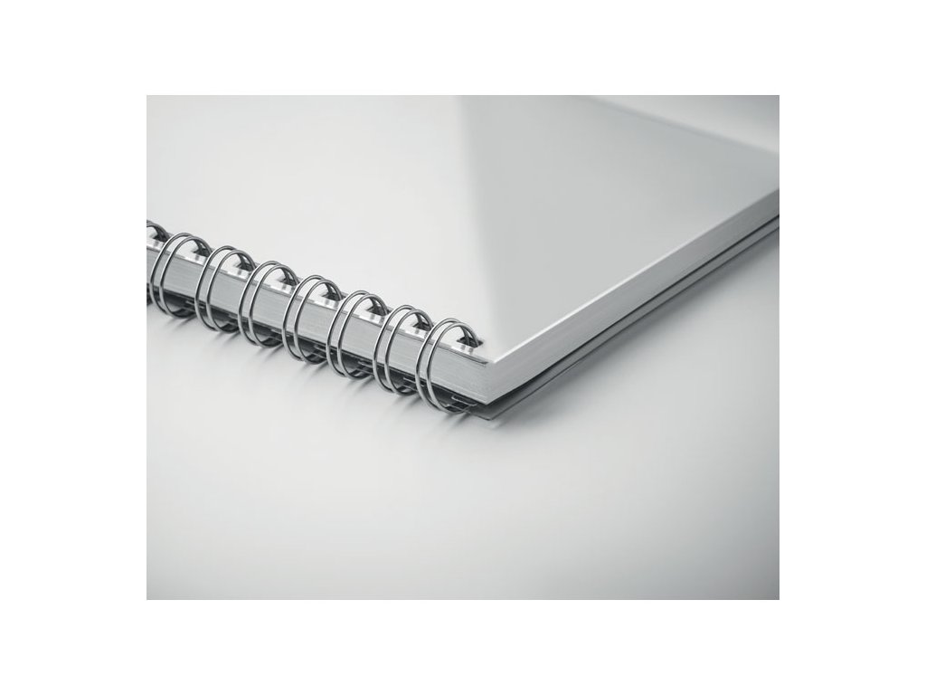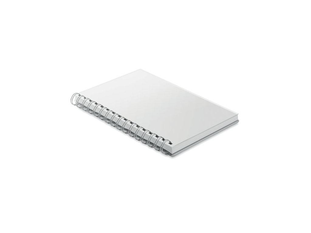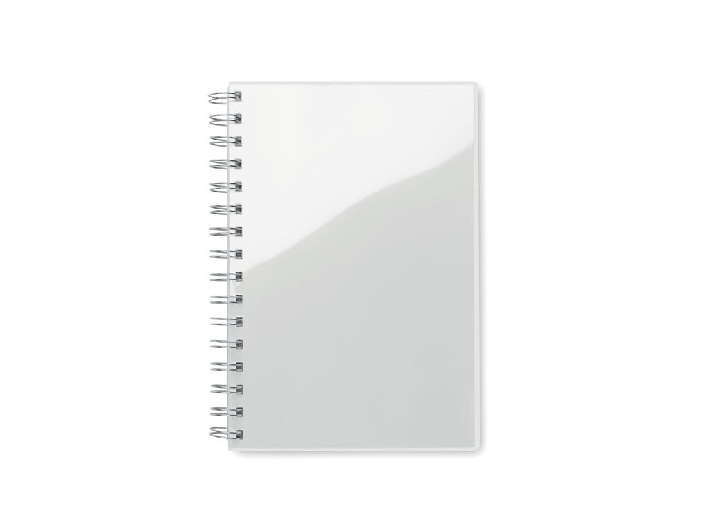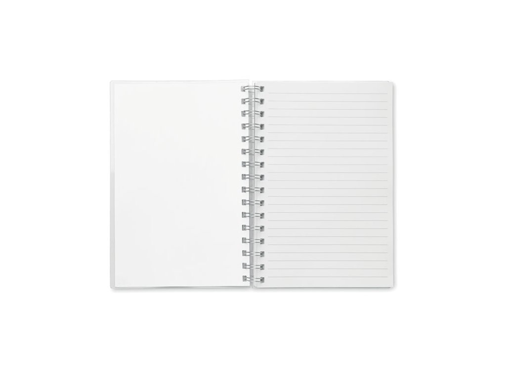 Kroužkový zápisník formátu A5 s obalem z RPET. 160 stránek (80 listů) recykloveného linkovaného papíru.Tento výrobek je určen jako reklamní předmět a je vhodný pro potisk Vašeho loga.
