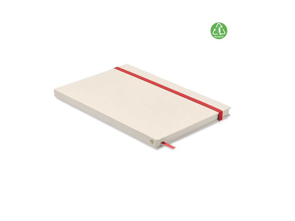 Zápisník A5 s tvrdými deskami vyrobenými ze 70 % z recyklovaných kartonů od mléka a 30 % z recyklovaného papíru. Má 160 linkovaných stránek (80 listů 80 g/m2) a pevnou vazbu. Uzavírací gumička a záložka ze stuhy.Tento výrobek je určen jako reklamní předmět a je vhodný pro potisk Vašeho loga.