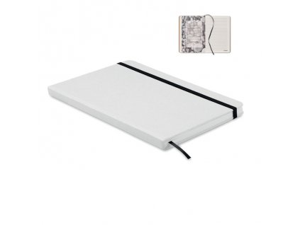 Zápisník A5 s obálkou z recyklovaného kartonu. 160 linkovaných stran z kamenného papíru (80 listů). Zavírání na gumičku a záložka.Tento výrobek je určen jako reklamní předmět a je vhodný pro potisk Vašeho loga.